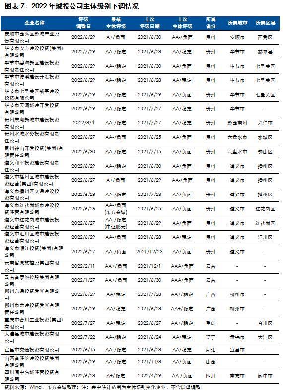 2022年,受新冠肺炎疫情、俄乌冲突等突发因素影响,我国经济下行压力明显加大,叠加城投行业融资政策总体偏紧,城投公司主体级别上调家数与上年基本持平,下调家数明显增加,贵州占比过半。