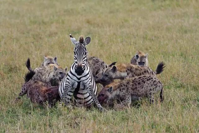 斑点鬣狗有着强大的心脏,它们花费大量的时间追逐猎物,把猎物累垮,然后从身体的下半部活吃它们,通常几乎足够了,而它们的猎物或者看到自己的肚子被掏空。 如果你的身体已经非常虚弱,或者患有其他疾病的话,那么就应该把这种“肉食者”赶走——因为它会在短时间内吃掉很多东西,而且还会让人中毒。 如果是雌性,就会先吃自己的胎儿,可恶! 这是一只不幸怀孕的斑马。
