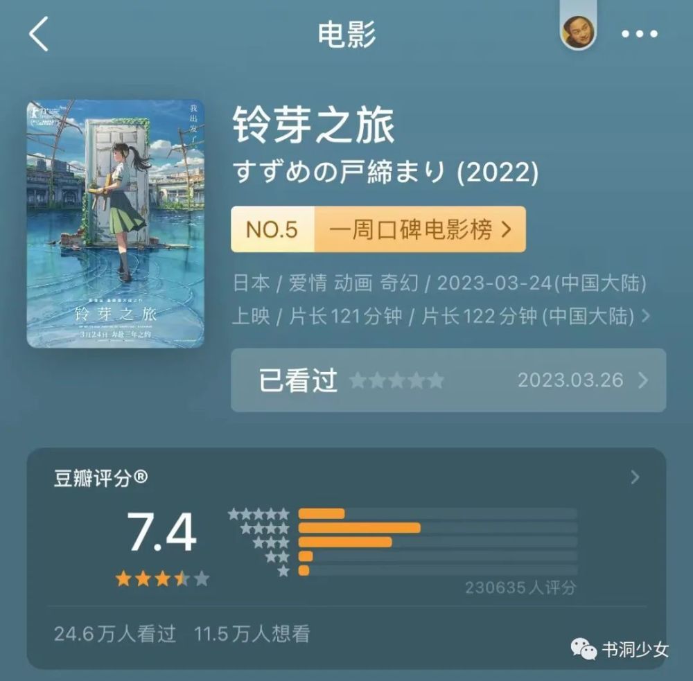 可能新海诚的世界里没有那么多寓言,他即使到现在脑子里还是少男少女的纯爱故事,在他的世界里,灾难都会被可视化为一种生物。他想表达些东西,但也触不到那么深。
