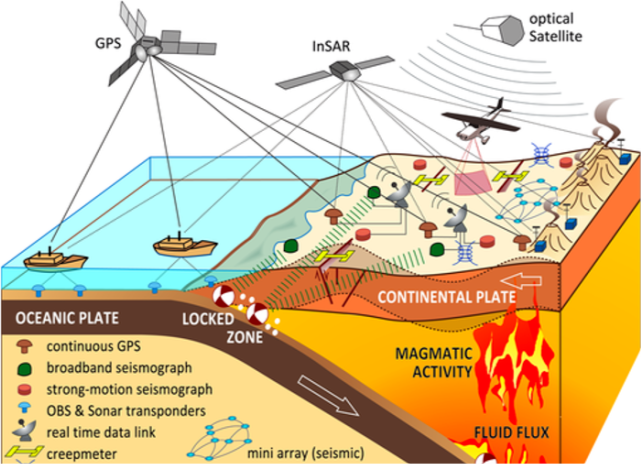 智利北部纳斯卡大洋板块和南美大陆之间的俯冲带示意图