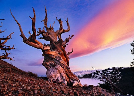 这棵形状像魔法树的名字叫做玛士撒拉树,年龄已有4800多岁,属于大盆地狐尾松,生长于美国西南部的高山区。在圣经里玛士撒拉被指为世界上最长寿的人,于是这棵曾被认为最古老的树也以此命名,因为过去曾有玛士撒拉树更老的古树被砍伐,于是至今玛士撒拉树的准确位置仍是一个机密,只有内行人或专业摄影师才能亲眼见到它的真面目!