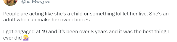 但也有人觉得,19岁订婚未必是件坏事,她自己开心最重要。