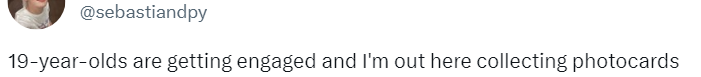 “人家19岁都订婚了,我还搁这儿收集小卡呢。”