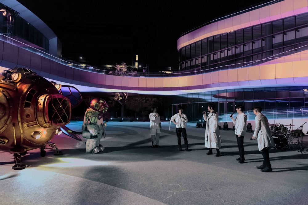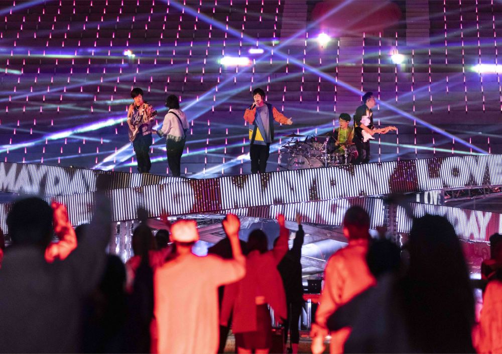 去年《五月天陪你跨年演唱会》飞天遁地陪你跨年,今年五月天以崭新的科幻视觉挑战震撼线上演唱会新体验。一开场,五月天乘着“MAYDAY EXPRESS”赶到现场和歌迷倒数,途中遇到了紧急迫降的喵星人,为了能帮助喵星人回到他的魔法世界,五月天必须收集到全世界的荧光棒能量,能搜集到这么多的荧光棒,除了五月天,最重要是每一位歌迷的力量。而这段魔幻奇遇记,就从《2012》开始展开,他们带着喵星人一览地球美景,搭乘大众运输,来到便利商店、360度《离开地球表面》旋转KTV高歌,众多场景1:1实景打造,更将历年五月天MV画面一起复刻进化。除了重金打造喵星人的飞行器以及多个场景,就连200公分高的巨型喵星人修改不下上百次,来来回回就花了两个月,最后成品也让五月天为之惊艳。