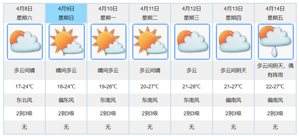 今天,多云间阴天,部分地区有小雨,最高气温22度左右,体感清凉,注意适时添衣。预计,10-11日,多云间晴,气温逐渐回升,早晚清凉;12-14日,多云间阴天,早晚清爽,午间微热。春季气温多变,注意适时增减衣物。
