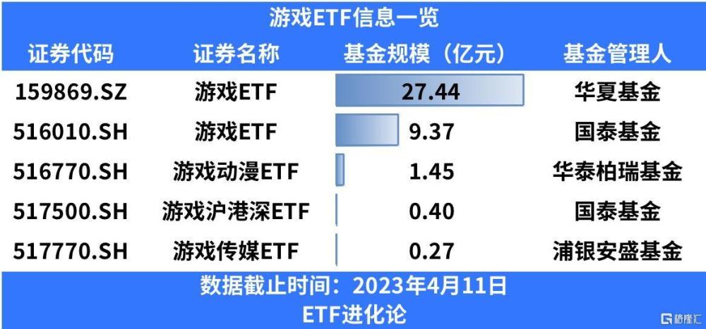 目前市场上共有5只游戏相关ETF,其中华夏中证动漫游戏ETF规模最大,高达27.44亿元,跟踪中证动漫游戏指数。