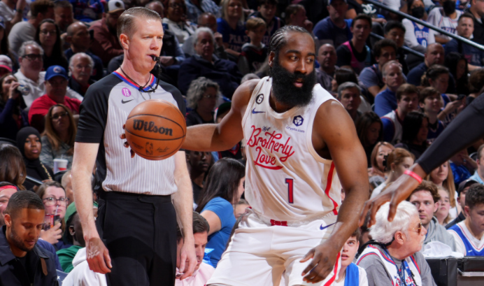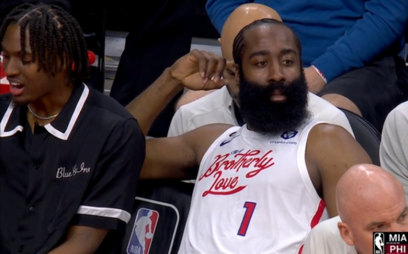 千场里程碑!哈登空砍14+4+4吞惨败 提前被换下:场边葛优瘫