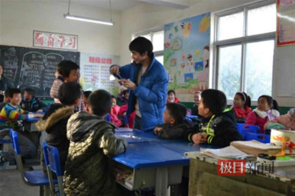 在荆门市仙居中心小学,余为伟为留守儿童开展公益科普活动