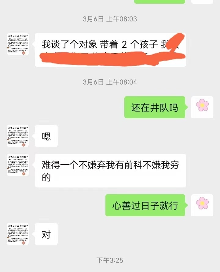 这次看到他跟我说找了个对象,我真心为他高兴,但内心又有些不是滋味,难道咱兄弟只能找离婚带两娃的了吗?甚至于这样,内心还得狂喜,终于有女人看上咱了。说到这里很多人可能要喷我,说离婚带两娃怎么了?就像我说的,心善能过日子就行,我之所以有一些不是滋味是因为和你们所站的角度不同。到了这个年纪,什么道理不明白,但明白归明白,真实的感受确实是有些不是滋味,容不得说谎。