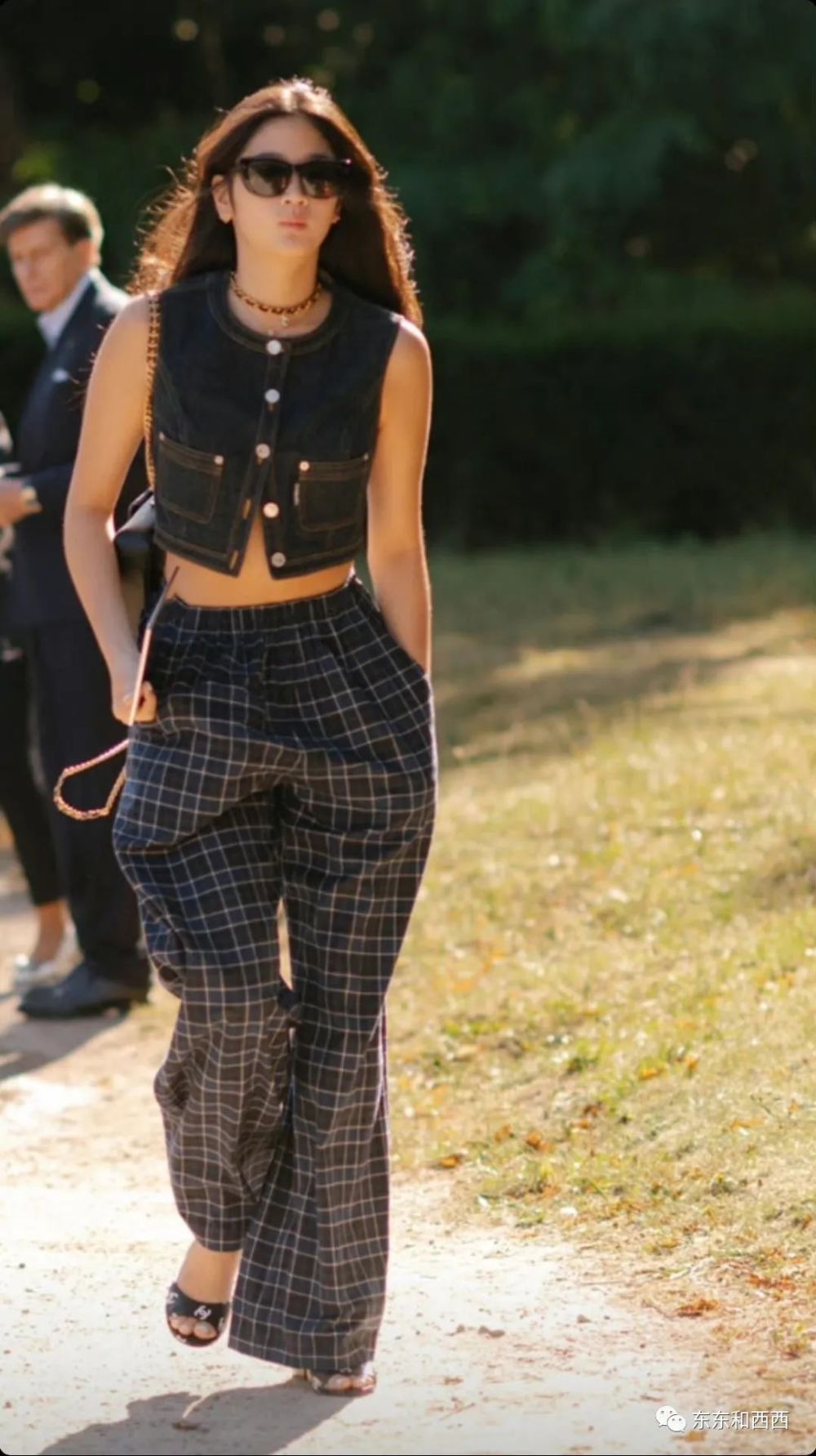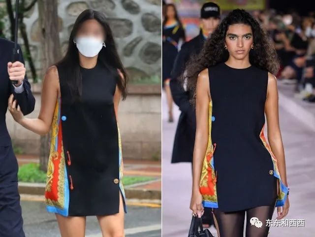 身上是范思哲2022春夏秀场系列,经典A字印花小黑裙搭配黑色细带凉鞋,售价约1.5元万元,同款裙子迅速售罄↓↓