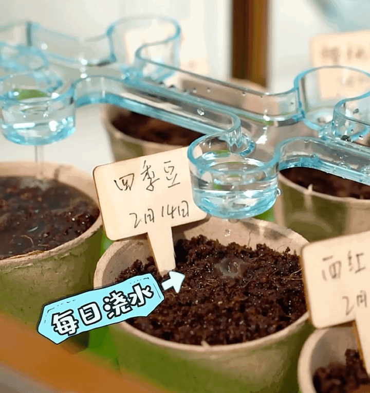 而且为了满足小朋友每天浇水的仪式感,透明的可视化观察箱,能让我们看到浇水量,每次只需要保持种植周围的土壤湿润即可。