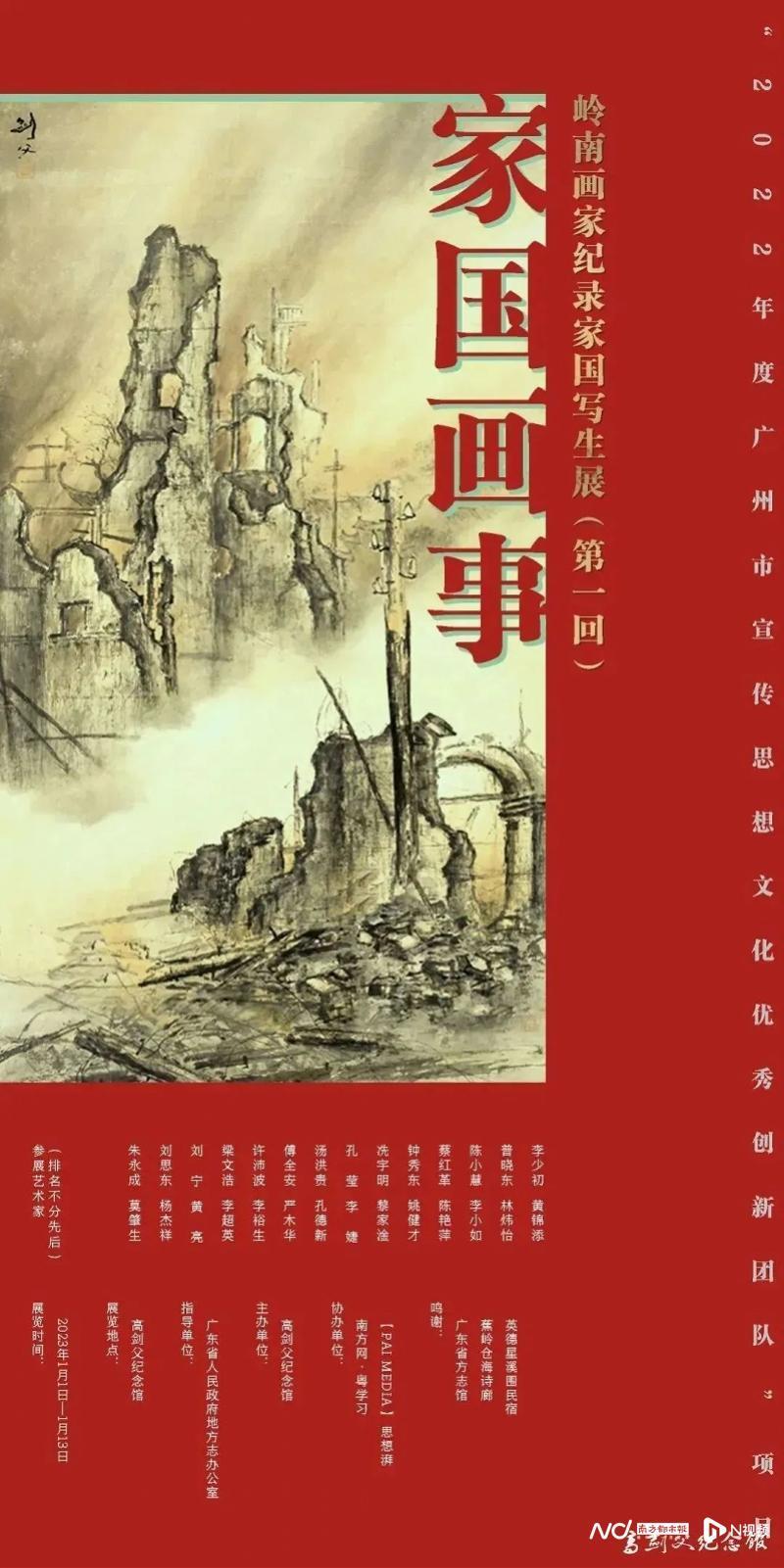 为了弘扬岭南美术“绘事家国事”的优秀传统,充分发挥艺术的教育功用,深入挖掘和推广红色旅游资源,促进乡村振兴,为祖国山河立传,以艺术家的独特视角来表现和推介有历史价值和现实意义的人文自然景观,高剑父纪念馆联合广东方志馆、大湾区卫视纪录专栏等机构,组织岭南美术家,走进各地具有人文意义的史迹名胜,用画笔+镜头的立体形式,来记录历史、写照风光,宣传爱国主义,助力乡村振兴,最终形成以家国画事为名的卫视专题片及写生作品展览,本次展览为首回展。人文名胜、美丽乡村,承载着中华文明的根脉,家国画事写生活动,对于弘扬岭南美术的家国情怀及爱国主义教育、精神文明的建设有着积极重要的现实意义。