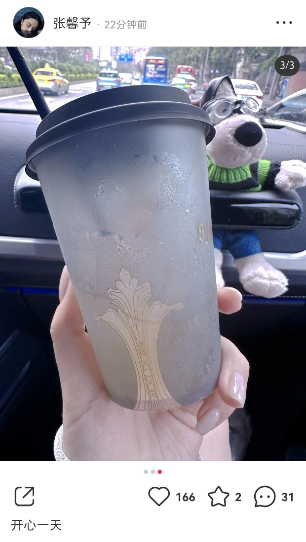 张馨予在另一个平台还多晒出了一张坐在车里的照片,感慨这是开心的一天。她手里拿着饮料,车上还放着非常可爱的玩偶,说不定是女儿的玩具。网友问张馨予是不是何捷在开车。