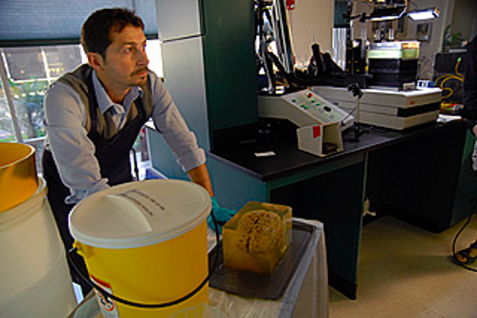 2009 年 2 月 12 日,加州大学圣地亚哥分校,伴随着披头士的背景音乐,科金的一名合作伙伴——雅各布·安内瑟(Jacopo Annese)——用切片机将亨利的大脑切成 70 微米厚的薄片,共 2401 片。切片过程全程网络直播,时长超过 53 个小时。