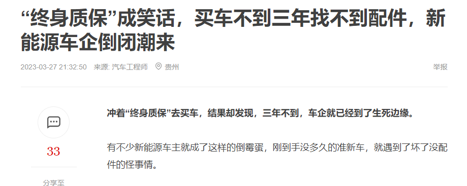 随着众多车企的倒下,售后也将成为一个问题。甚至已经出现类似的报道了。