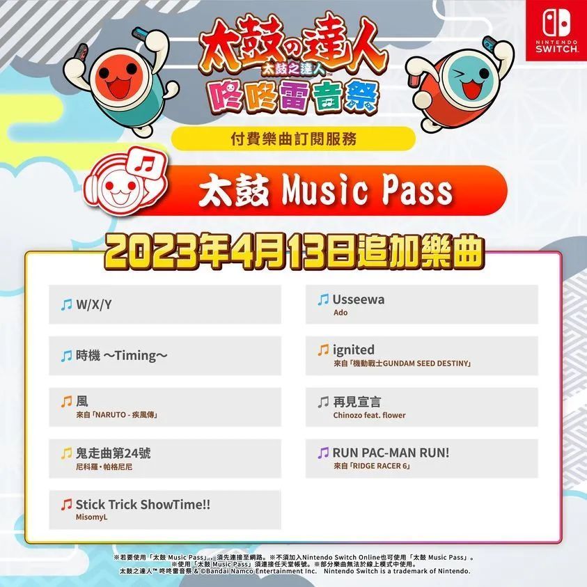 《太鼓之达人咚咚雷音祭》4月份更新曲目