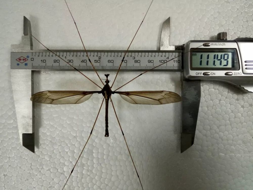 那么,世界上最大的蚊子有多大呢?它的翅展竟然达到惊人的11.15厘米,身体长度近5厘米!这只蚊子是我在青城山采集到的。