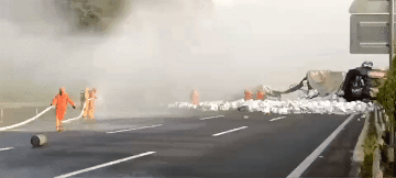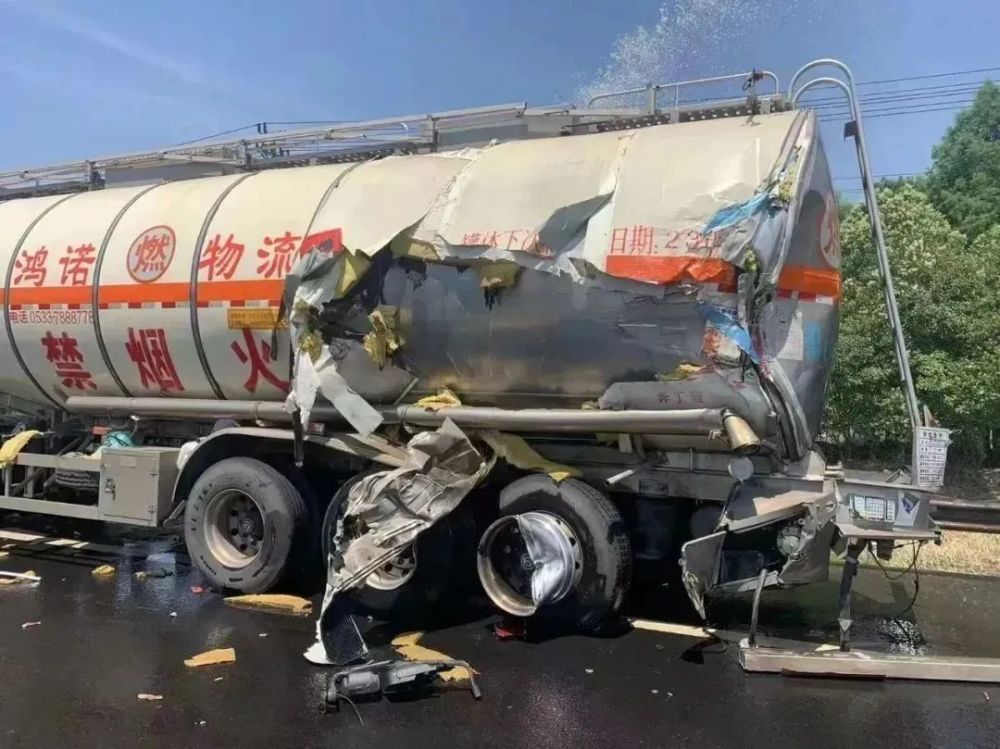 2022年6月,在205国道洪泽黄集道口向北1公里附近,一货车追尾了一辆装有33.5吨异丁醛的槽罐车。警戒、稀释、堵漏、倒罐......经过消防、交警等多部门10小时的紧张处置,现场危机被成功化解。
