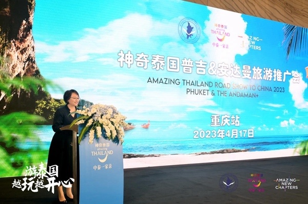 人民网重庆4月17日电 (冯文彦)17日,2023神奇泰国安达曼海域&普吉岛中国区旅游推介会在重庆举行。泰国国家旅游局亚洲及南太平洋区域副局长塔涅?彭苏晚(Tanes Petsuwan)率泰国旅游行业代表团56家企业来渝参会,来自重庆、四川、陕西等省市超100家旅游企业及200位旅游行业从业者进行了商务洽谈。