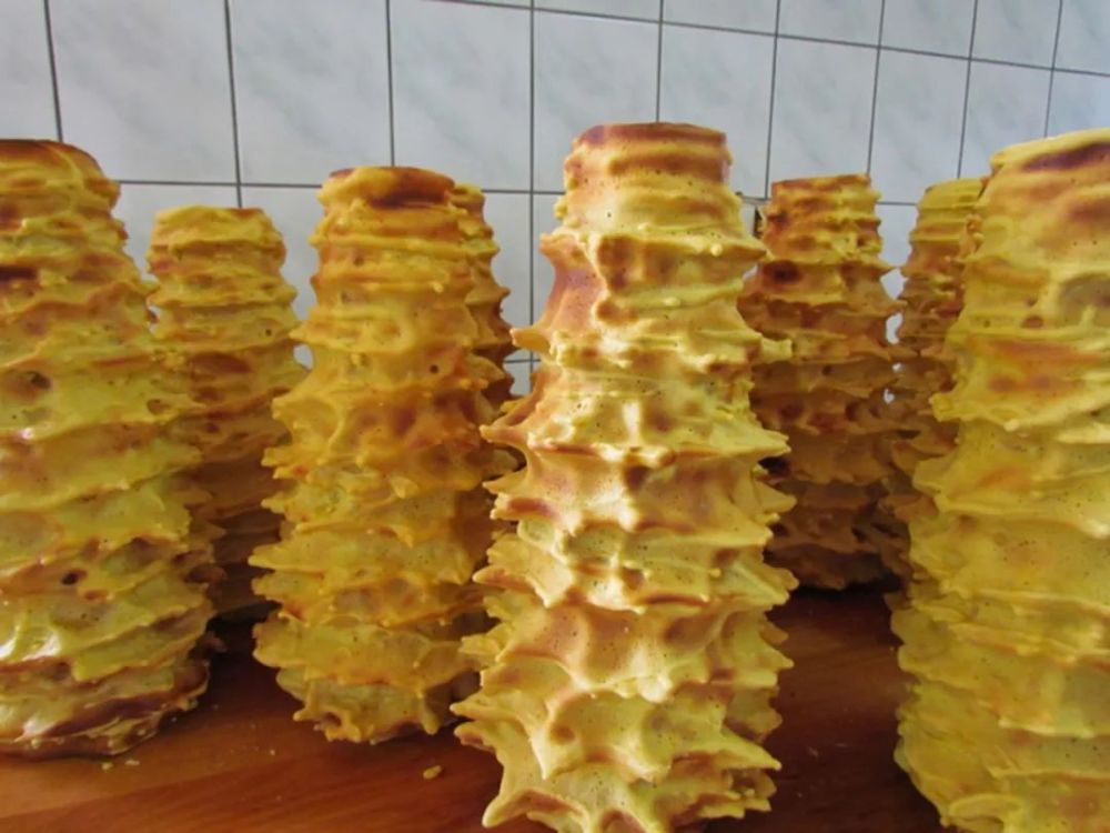 比如立陶宛的这种疯狂圣诞树蛋糕,就是在浇最后一层蛋糕糊时突然加速转动烤叉造成的: