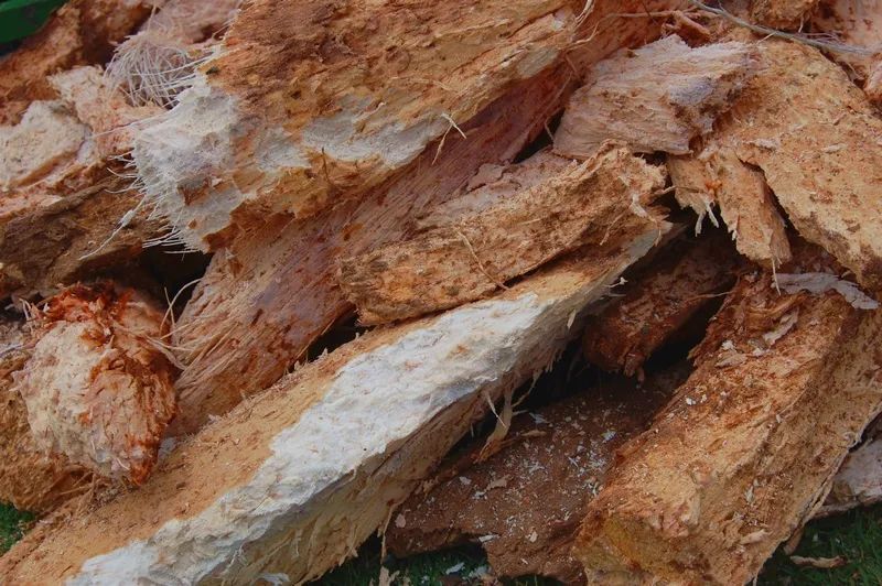 西谷椰属于棕榈树,干被切开后是如图所示的白色,充满了淀粉