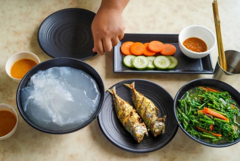 左边那个白色的就是西谷椰糊糊,图片上展示的就是一顿标准的文莱午餐