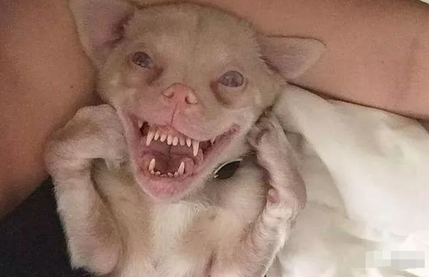 看到这只狗狗,你们有没有被吓到?这只叫塔克的狗狗实际上是一只吉娃娃,但是因为长得很恐怖,五官严重畸形,笑起来很诡异,被称之为世界上最恐怖的狗狗,当年在狗场出生的它,也是吓到了狗场老板,老板更是决定在他3个月大时将它安乐死。