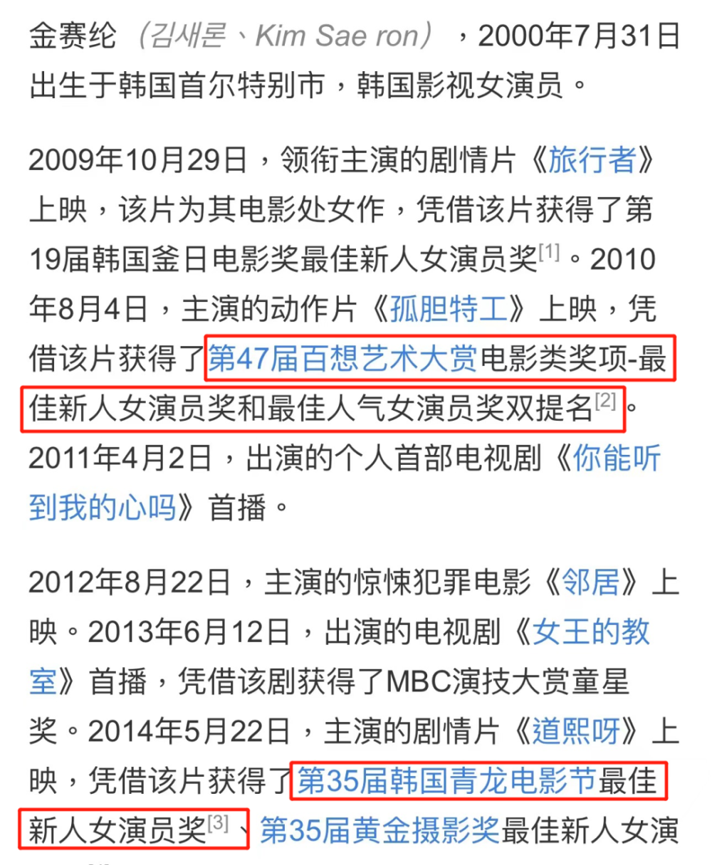 14岁,获得了韩国青龙电影节最佳新人,这可是韩国三大电影奖之一。
