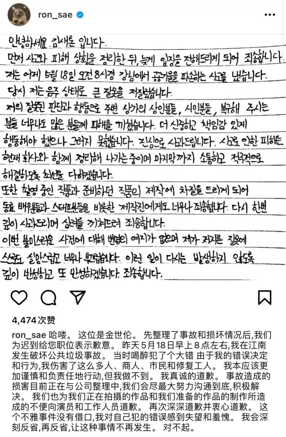 虽然她通过社交平台发布了手写道歉信,但南韩网民并不原谅。