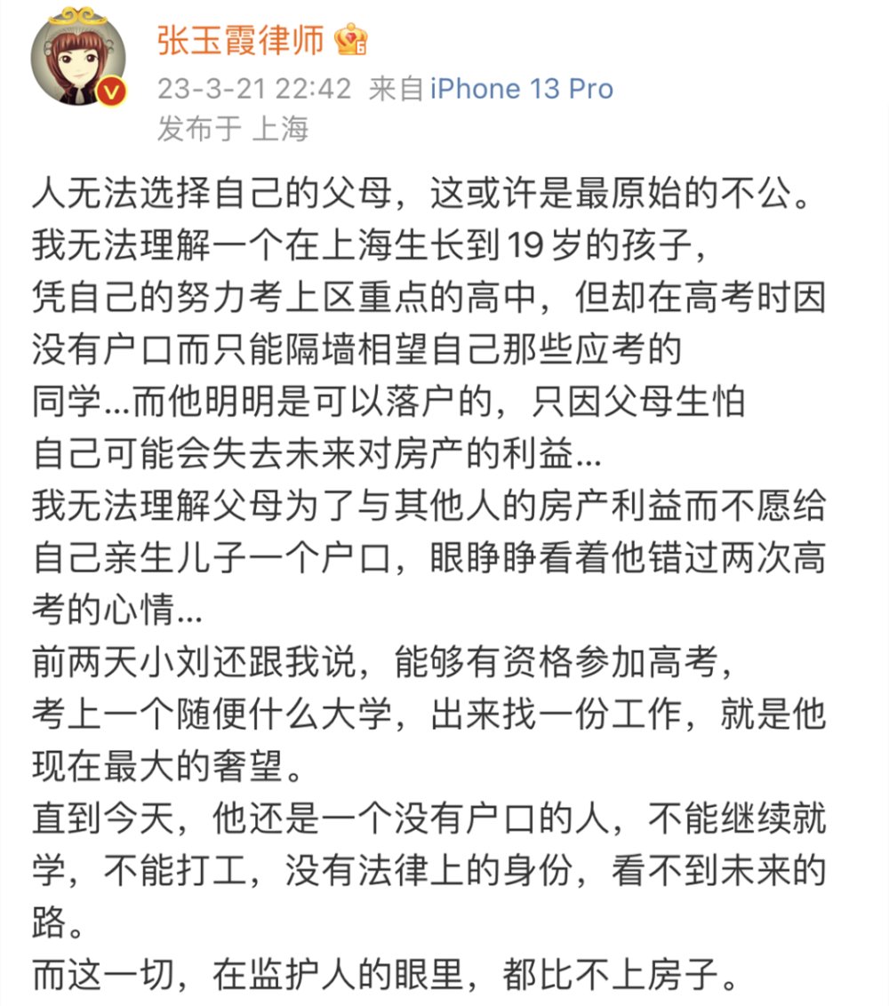 手机访问:wap.265xx.com父亲是上海人,19岁学霸却从小没户口,还耽误高考……调解律师都怒了