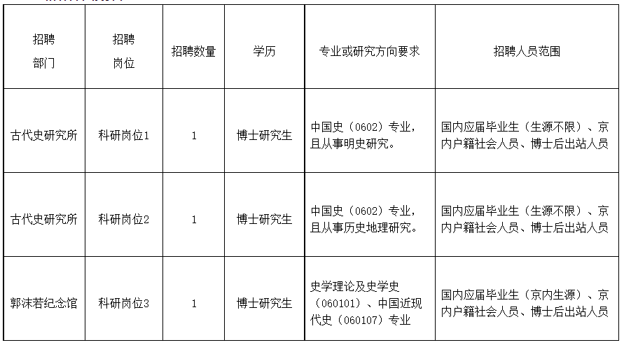中国社会科学院古代史研究所(郭沫若纪念馆)2023年度第一批专业技术人员招聘公告(2023年2月20日)