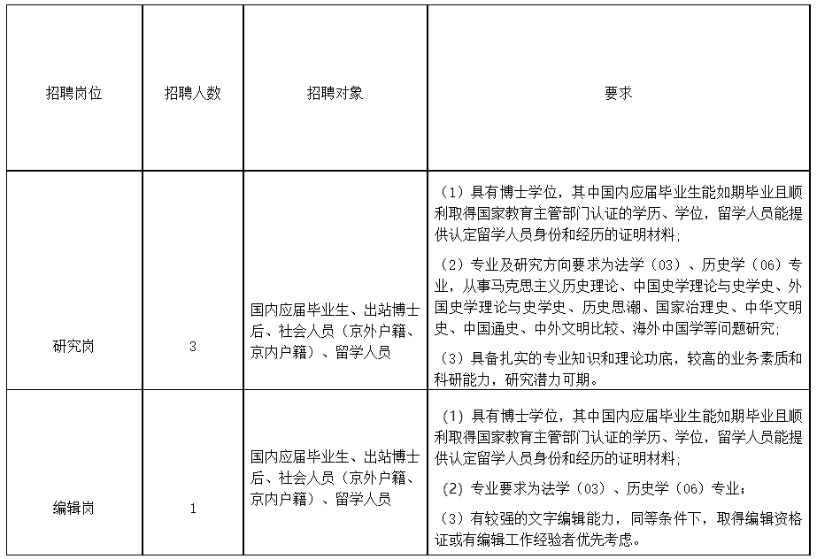 (二)招聘岗位:《史学理论研究》编辑部编辑岗位