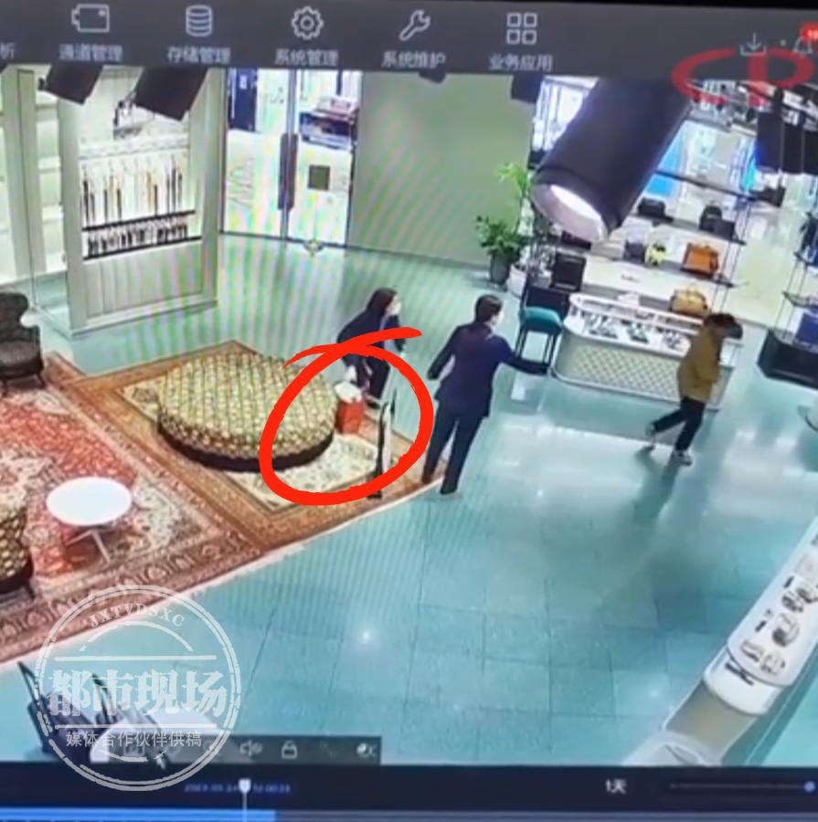 店员:他把袋子放在旁边,试了鞋子,试好后在女装逛了一下,他就要走,我们的销售叫住他说袋子没带,他说这不是我的,不是他的,翻了一下就走了。