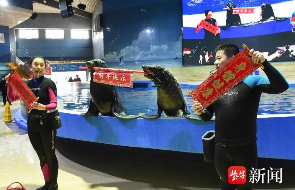 两只小海狮祝你新年快乐? ?记者 范晓林 摄
