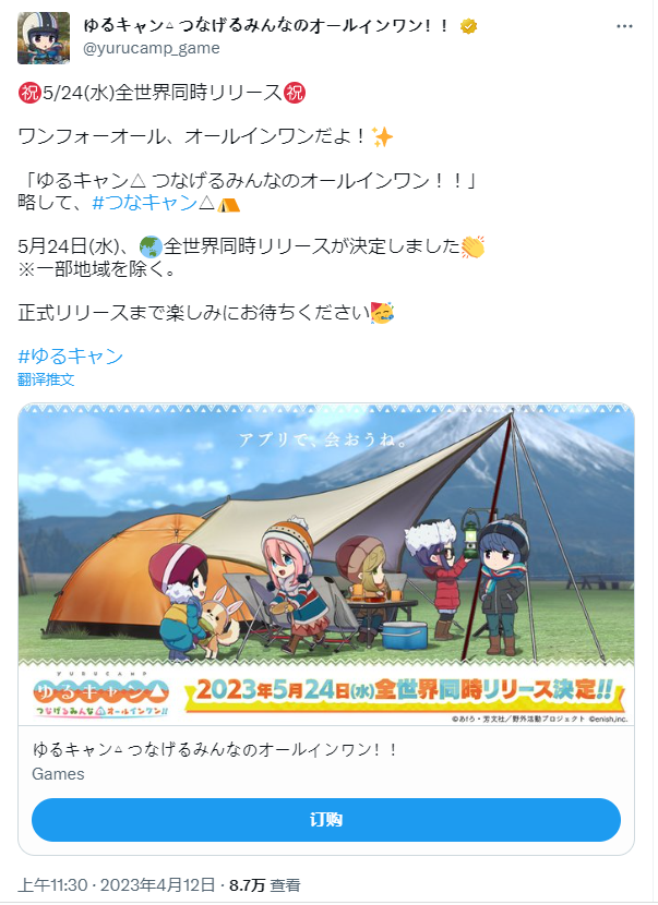 《摇曳露营△》手游 5 月 24 日上线