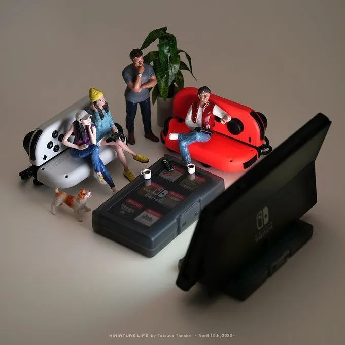 用 Switch 主机、手柄和卡带盒创造了一个小型的家庭游戏屋~