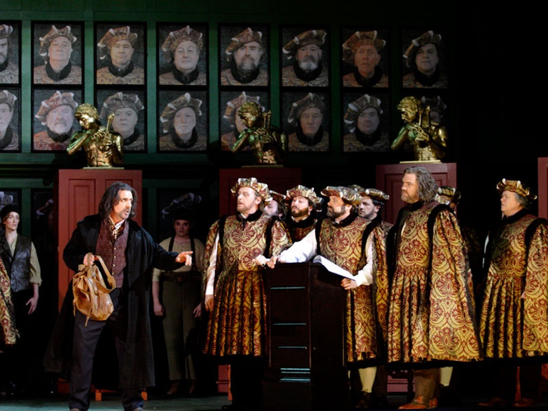 歌剧《纽伦堡的名歌手》。阿多诺以《名歌手》中出现的众赞歌片段为例,信仰在被引用前的状态中不需要任何特意的强调,但是在瓦格纳式整体艺术中出现时,情况发生改变了,由于身处不同的时空环境中(阿多诺特别强调:这是《特里斯坦与伊索尔德》前奏曲“作为新潮的创作”已经出现后的年代),为了不使旧有的内容在形式上过时和陈腐,瓦格纳必须添加特意的强调性,比如加大配器的强度、强调对比表达、或是用九和弦等刺激性的和弦走向挤压旋律原有的表达效果。将外在的内容修饰成各种的音响效果,从而“一致性”地站在一起,这就是阿多诺指责的瓦格纳式引用,无论主导动机的强调,还是民歌、圣咏的借用都是如此。这样一来,原本表达信仰的音乐失去了信仰,变成了“快看吧!我可是有信仰的!”这就是阿多诺所谓“法利赛”的来源——仿佛僧侣在布道时的缺乏真诚。是否真诚在常识中经常作为艺术性和所谓“商业庸俗”的分界线之一,当瓦格纳爱好者将其作品视为极致严肃的艺术时,阿多诺反而在批判轻音乐和物质现代性的文章中将其作为讨伐对象之一。瓦格纳和德奥浪漫派“引用性”的音乐使用,被阿多诺用“反巴赫的庸俗”来批判。而贝多芬在阿多诺的解释体系下,一方面被视为对照瓦格纳的相对肯定,另一方面却与巴赫形成对照,此时贝多芬作为瓦格纳时代必将到来的征兆性现象而被阿多诺批判。阿多诺本人作为一个被黑格尔和历史进步论影响过的思想家,本人却通过另一个反面对历史走向提供了新的观察视野:所谓历史进步和新德意志派念念不忘的崇高,只是19世纪工商社会和小布尔乔亚世界对艺术史的异化,贝多芬的伟大反而无意间为这个异化提供了纪念碑式的支撑,最终异化的庸俗蜕变为瓦格纳而得以产生了。在此逻辑下,古斯塔夫·马勒的价值并不是新德意志的延续,反而是对这种异化走到瓦格纳的极端后产生了怀疑和讽刺。这种解释模型跳出了风格史的“谁是浪漫主义的极致”,而采用了“谁是异化的极致以及谁不得不走向极致的反面”。我们不得不正视的是:正因为以阿多诺为代表的这类史观出现,在思想层面才相当程度上导致了马勒作品的声望在20世纪六七十年代的忽然崛起。