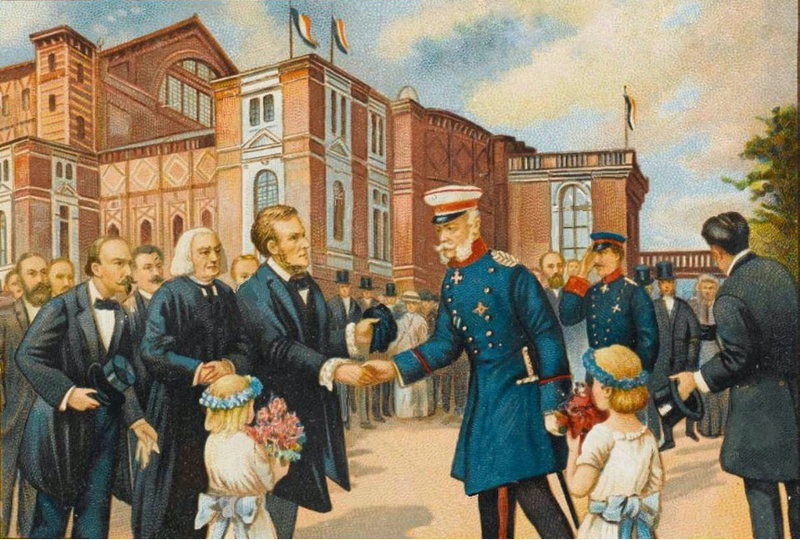 德国皇帝威廉一世接见瓦格纳。阿多诺在《音乐社会学导论》中将一体两面的“指挥家与管弦乐队”设置为标题,而早在上世纪三十年代成稿、1952年开始大规模出版并引起关注的《试论瓦格纳》中,他己经进一步演绎了管弦乐团的进一步后果。管弦乐队发展的必然性结果除了贝多芬和柏辽兹之后“愈发臃肿的配器规模”,最终形成了所谓“指挥家音乐”这个结果概念。从管弦乐队到贝多芬,再到指挥家音乐,再到“第一位以宏大风格创作指挥家音乐的瓦格纳”。瓦格纳设计“看不到指挥与乐团的剧院”的初衷,其实是在更高的位置俯瞰听众,他的指挥台位置虽在观众之下,但“摆布观众”的统治意象借助于不断重复的主导动机,以“广告商品符号性的功能”操纵一切。创作“指挥家音乐”的指挥家不需要指挥台,他们在听觉上已经达到了征服的目的。于是,众多以“指挥家音乐”为设计的瓦格纳产品在各种外在的作用下,驱动观众走向服从统一意志的归宿。讽刺的是,当指挥家的统治建立起来,并施加足够的时间温床而催化后,死去的贝多芬的意志反而被指挥家瓦格纳剥夺了,死去的瓦格纳又被他以后的指挥家甚至政客所剥夺了。阿多诺所指出的“引文式”瓦格纳音乐元素需要音乐以外的确定性诠释,那么瓦格纳音乐中的无终旋律呢?在阿多诺的笔下,无终旋律的音乐模进“貌似发展实则重复”。而在现实中,阿多诺所指的无终旋律“舞蹈冲动”甚至能够诱发日本舞蹈家敕使川原三郎这类舞者的冲动,二十一世纪的敕使川将《特里斯坦与伊索尔德》音乐编为波浪式的双人舞蹈,这相当程度上跨越了不同的时空,形成共鸣。假设这能被阿多诺得知,他一定会想象在敕使川的舞姿之上不断挥动着瓦格纳那杆具有魔力的指挥棒。 接受阿多诺“彻底否定”的前提当我们孤立地阅读《试论瓦格纳》时,往往会前提性以“否定辩证法”为前提,从而合理化阿多诺对瓦格纳的彻底否定。比如我们目睹阿多诺对瓦格纳和贝多芬的比较时,一定将阿多诺对贝多芬的肯定视为“相对的肯定”,而将其对瓦格纳的否定视为“绝对的否定”,或者说,对贝多芬的相对肯定只是在批判瓦格纳这个情境下所附着的产物,对贝多芬的否定则是另一个场域中绝对的存在。但是,当《论马勒》和《试论瓦格纳》编为一册,形成了一本《论瓦格纳和马勒》时,我们通过前后的对照能够得到提醒,我们会格外注意他对马勒的宽容和对瓦格纳的“刻薄和不公”。比如阿多诺用科希玛(李斯特之女,瓦格纳之妻)的恶行去指责瓦格纳,这显然是荒唐的;还有他对某些事实层面问题的忽视,例如:“主导动机“这个概念的过度雕刻和推崇很多根本不形成于瓦格纳本人的创作逻辑和言行,而是出于“拜罗伊特学派”一些谄媚式的宣传,瓦格纳本人只是利己性的默默吞下而已,在这一点上,也许科尔曼反而看得更清楚些;至于所谓“二把刀”“半吊子嫌疑”,则明显出于阿多诺对瓦格纳早年在魏因里希手下受训时的成果的严重低估;再有是1848年的革命活动在多数社会主义评价体系下,都被行为性地判断为瓦格纳的人生闪光点,但阿多诺却进一步将其做心理和主观性的分析,最终将艺术家从“元法西斯分子瓦格纳”继续降格为“自我毁灭倾向的反社会人格恐怖分子瓦格纳”,乃至一位以建设性的革新诉求为工具、实则从精神到行动履行毁灭任务的瓦格纳。阿多诺对瓦格纳和马勒的许多标准不一的论述,其实揭示了阿多诺否定历史进步论,批判工商社会对艺术进行异化的历史框架贯穿从17世纪到20世纪的整个西方音乐史,已经形成了一个完整的历史解释体系。他的理论体系很可能会把他的某些事实判断脱离真正的事实。