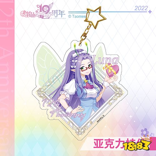 【小花仙十二周年-亚克力挂件】 挂件搭配了特别设计的画框背景,使用闪粉亚克力进行制作,高清双面印刷,营造庆典纪念氛围。