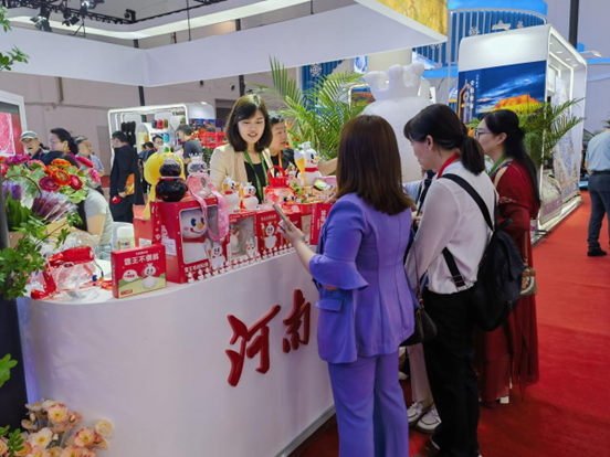 作为河南省商务厅组织的32家参展品牌企业之一,蜜雪冰城带着以其IP形象“雪王”为主要元素的茶与零食等预包装食品和文创周边产品首次亮相消博会,向观众展示了其在新零售行业的发展成果。