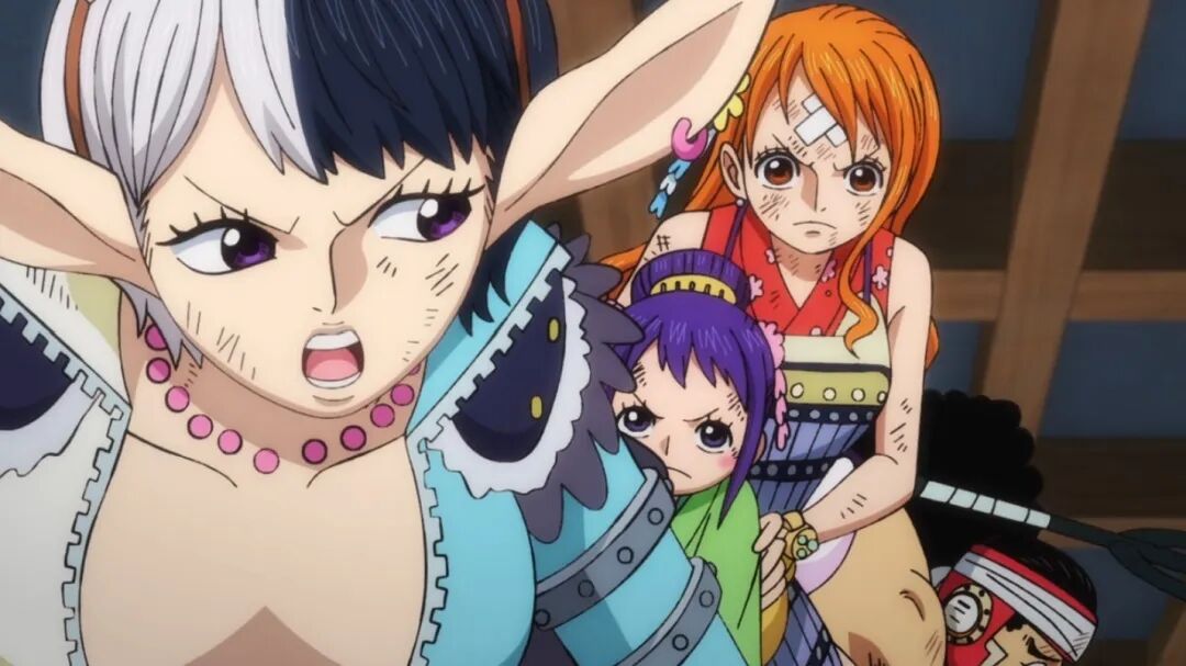 当然是我们的大和啦!大和使用鸣镝,被凯多反弹。有的朋友可能想到了,这是一段对手戏,是不是凯多要用金刚镝,然后大和回忆三武士呢?想得太美了!并没有金刚镝,本集屋顶部分到此结束,三武士还要留给下集继续拖呢!