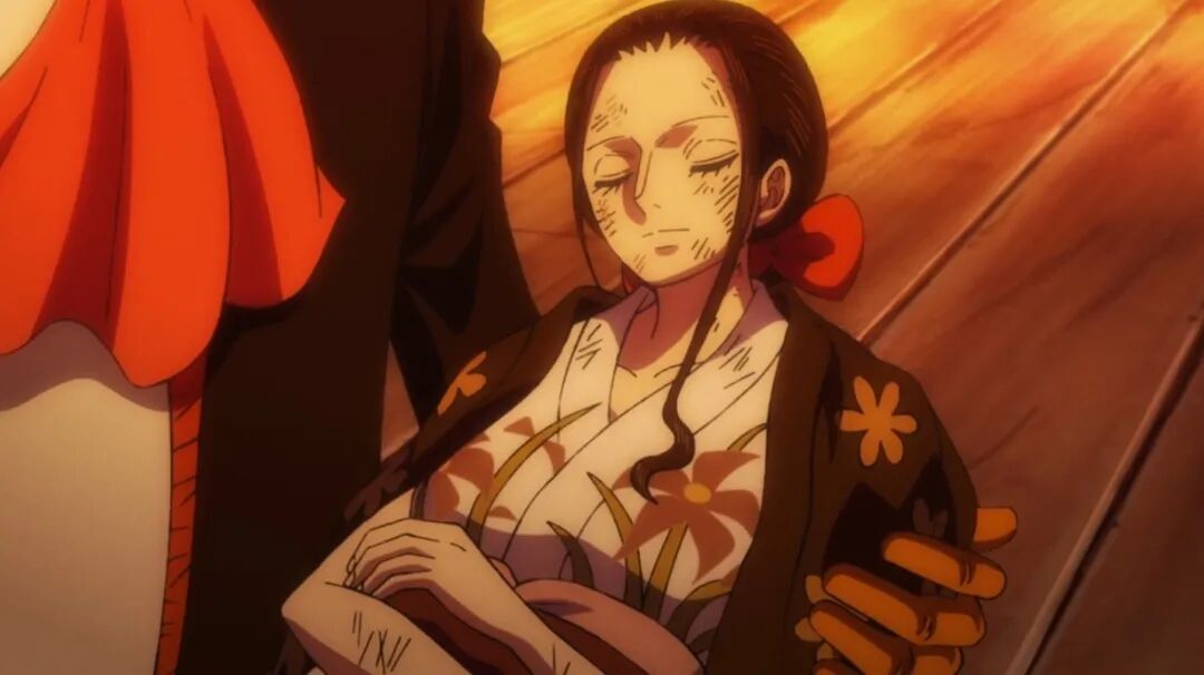 布鲁克这边是一幅温馨的画面,罗宾安心地睡在伙伴怀中,布鲁克抱着她与毛皮族会合。鬼岛的火势越发猛烈了。