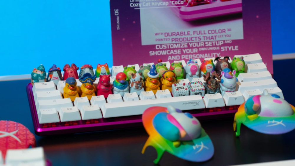 HyperX将在CES 2023展会期间展示这些个性化的键盘、耳机、鼠标和其它游戏外设。HyperX计划推出的首款3D打印外设产品系列为限量版定制键帽1,并将在未来几个月内推向市场,该系列键帽不仅可用于HyperX的机械键盘,其它众多兼容的机械键盘也可适
