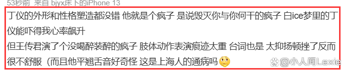 再说了,观众的吐槽重点也不怎么在“疯”的剧情背景和角色状态上。主要吐槽的是演技,是没把“疯”演好,台词也有问题。