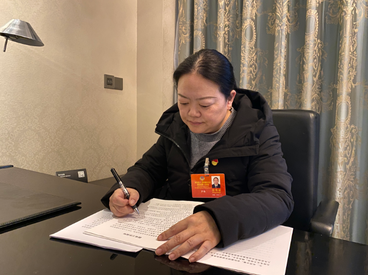 1月11日,自治区人大代表石桂玲在宾馆修改议案。作为一名从事护理工作31年的“老护士”,她感触很深;作为一名新当选的自治区人大代表,她希望自己的议案能早点落实。
