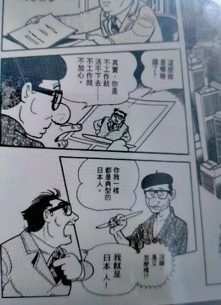 而勤奋就是美德的结果,造成了有病在身也不惜粉身碎骨照常工作的组织社会,从小村落到大企业都是由人组成的,漫画里江户商事的这位经理,为了家庭而勤奋工作,这么做事哪里错了?其实,你是不工作就活不下去。