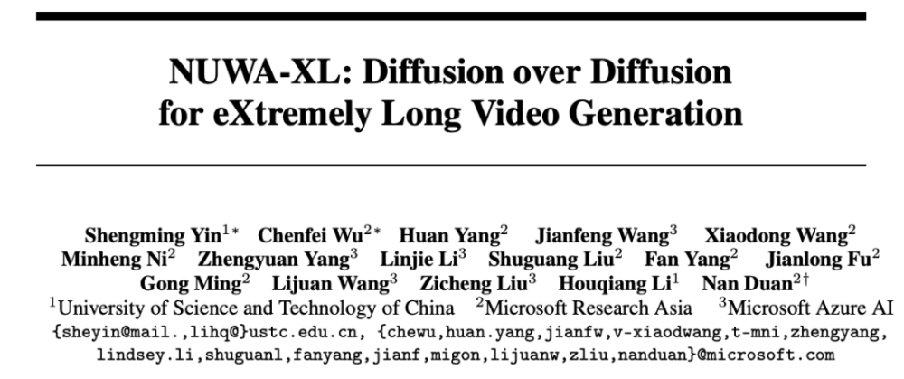 为了解决这些问题,微软亚洲研究院提出了 NUWA-XL(eXtremely Long)。