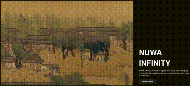 随后推出的 NUWA 升级版——无限视觉生成模型 NUWA-Infinity,则可以支持更高分辨率的图像和短视频生成任务,让视觉艺术创作趋于「无限流」(还记得那个无限延展的 Windows 桌面吗?)。