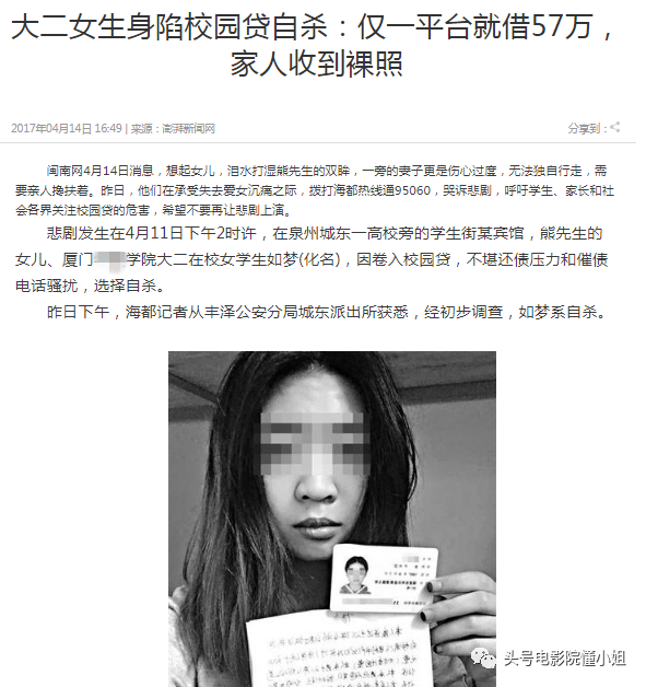 片中涉及的校园贷,早就有大学生身陷非法的校园贷而深受其害,媒体多次多次报道相关新闻,轻则被骗钱,更有甚者因此失去生命。