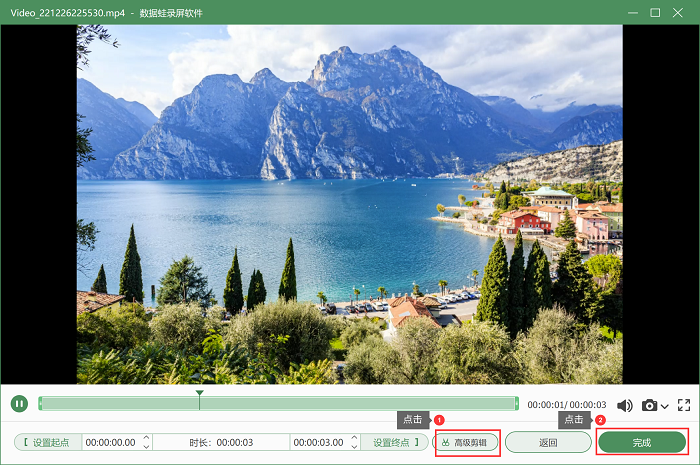 步骤5:录制结束后,小伙伴可以在弹出来的【预览窗口】进行观看,如果觉得比较满意了,就可以点击右下方的【完成】按钮,对该录制的视频进行保存。